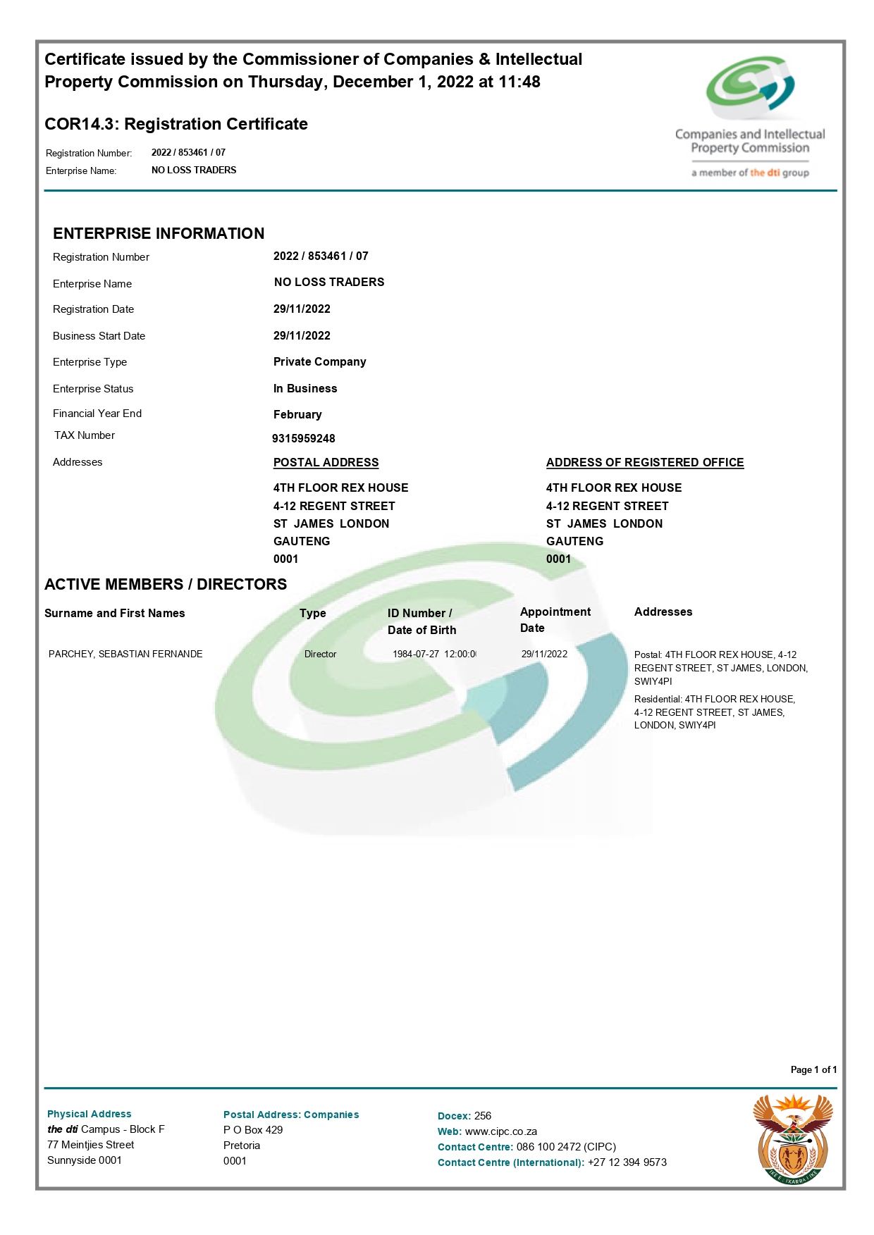 Corporate Address:-4th floor Rex House 4-12 Regent Street st james Gauteng.